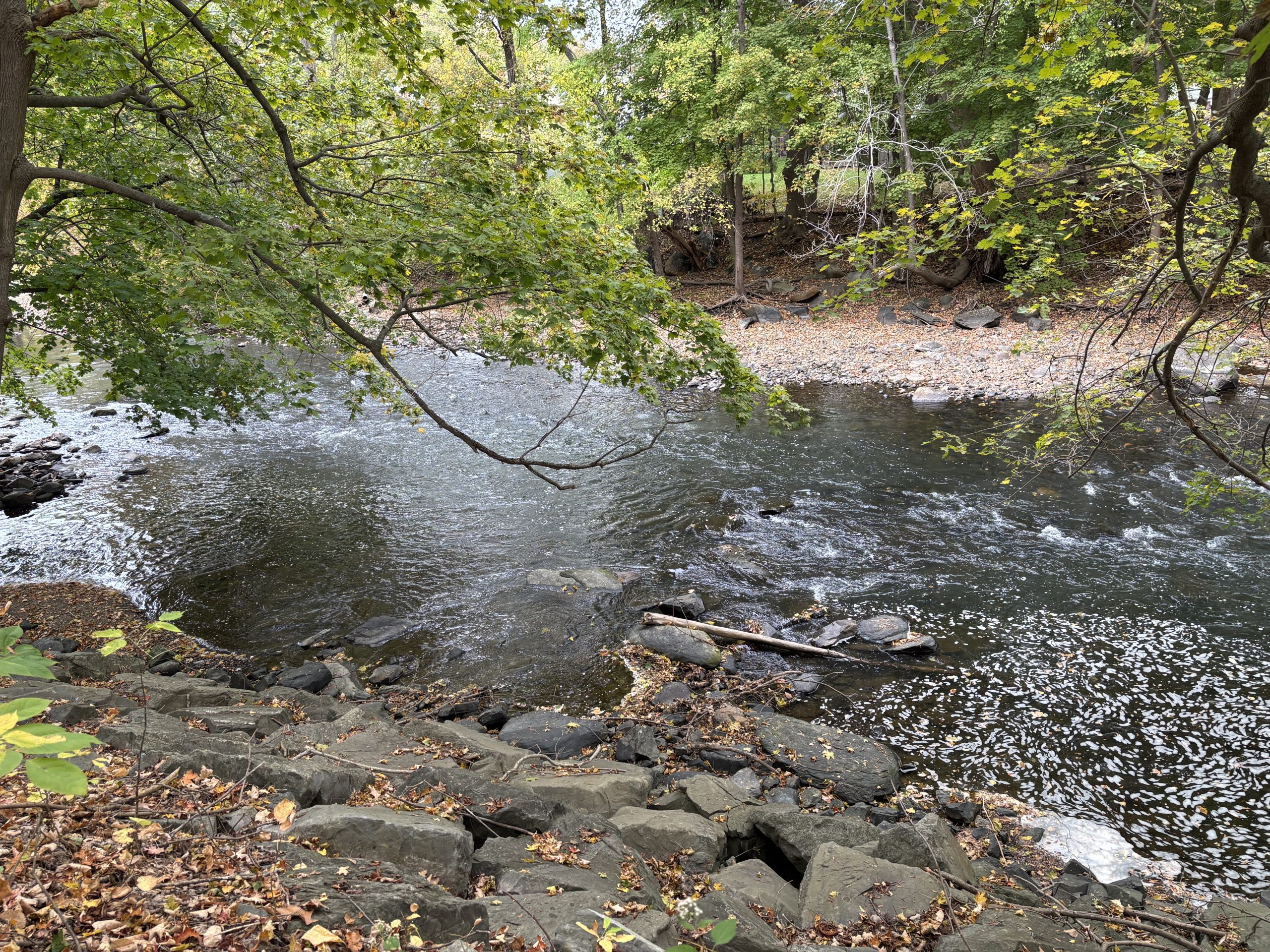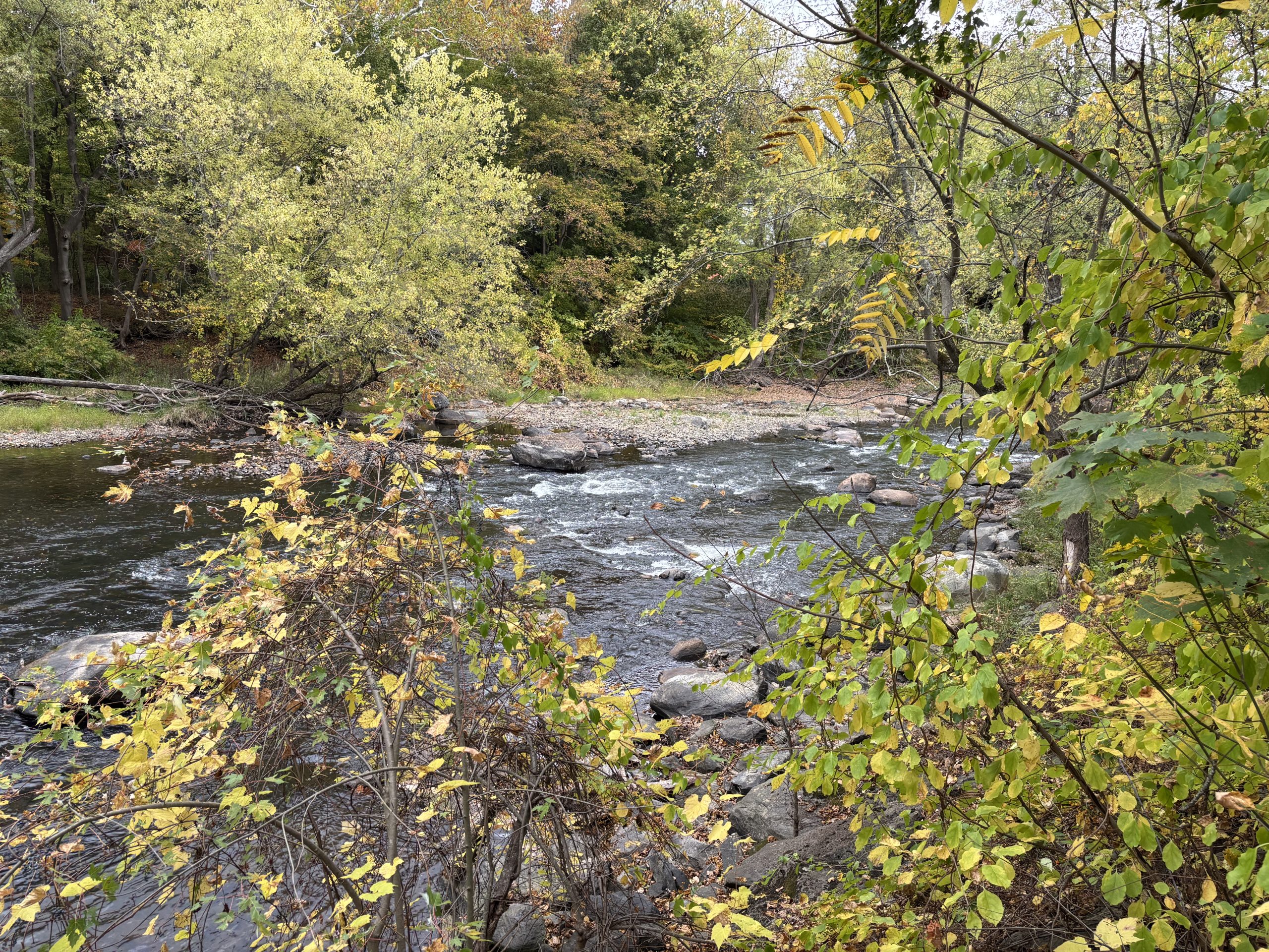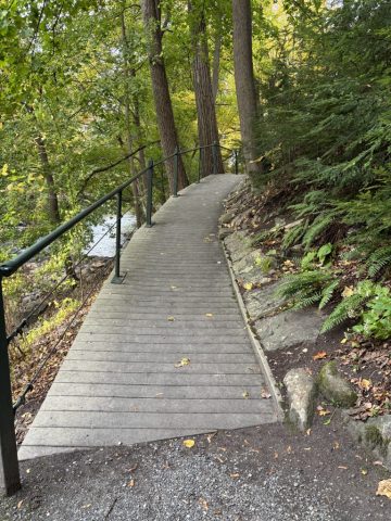 The Housatonic River Walk in Great Barrington, Massachusetts, is a beautiful half-mile greenway trail that runs along the west bank of the Housatonic River, right in the heart of downtown. Despite its urban setting, the trail offers a tranquil and immersive nature experience, showcasing the river’s ecological richness. The trail is surprisingly quiet, and you can hear the river and take in nature without the din of traffic.