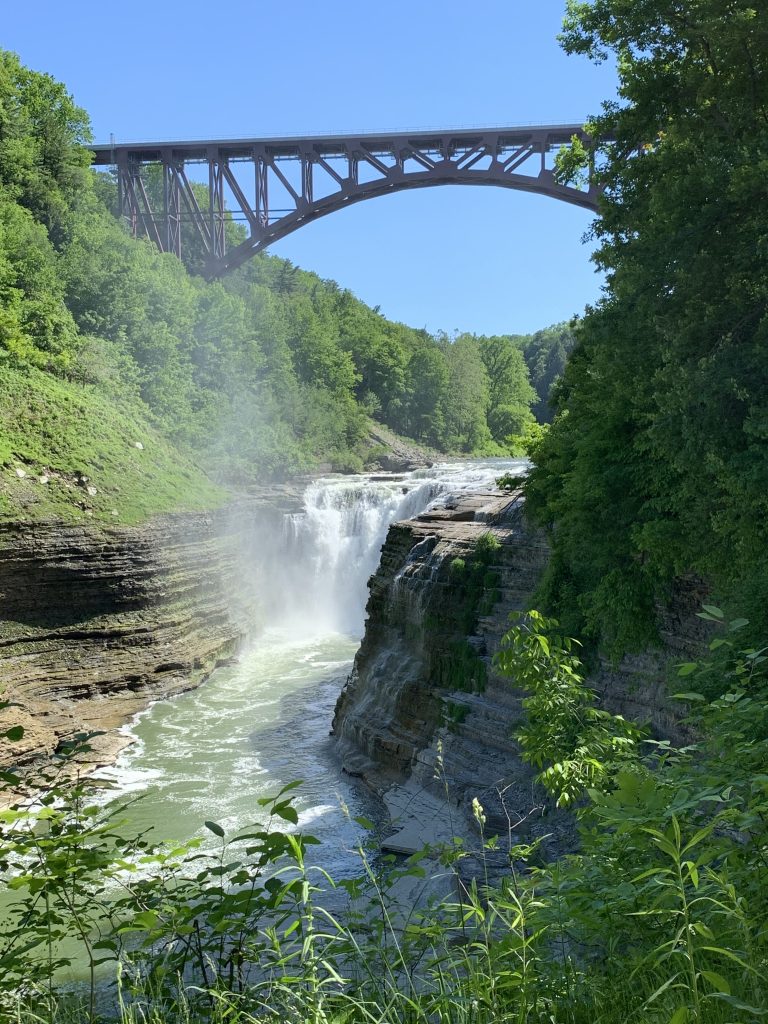 One of the first landmarks I encountered at Letchworth was the Portage Viaduct—a towering steel structure that marked the entrance to the park. For more than a century, trains crossed this span, which dated back to 1875. It was a striking sight and a defining feature of the Upper Falls landscape.
